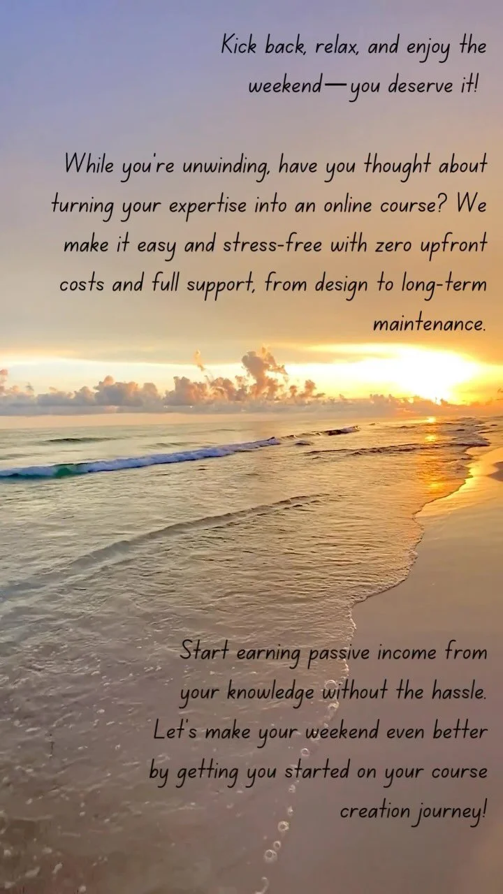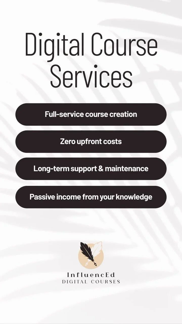 Ready to turn your expertise into a profitable digital course? We've been crafting top-notch courses for big corps for 10+ years, and now we’re here to help small businesses and influencers like you do the same! It's easy, fun, and risk-free. We'll create a course together, and we both profit when it sells!